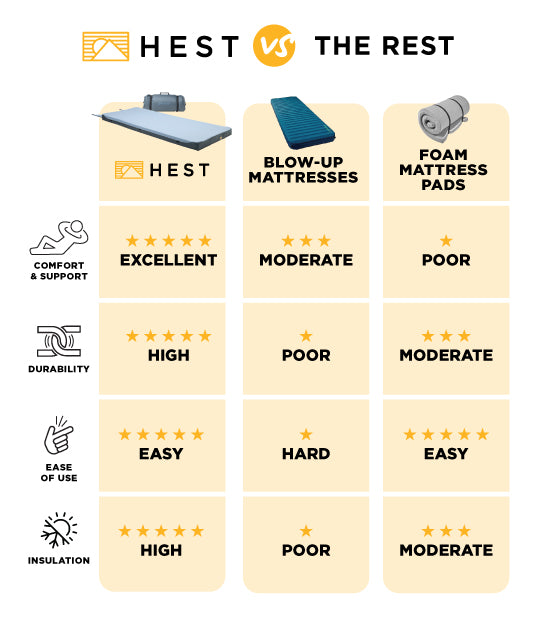 We designed and built the most comfortable camping mattresses, sleeping pads and pillows with enhanced memory foam that takes all the best things from your home bed and packaged it up into a portable, deluxe experience for under the stars.Â