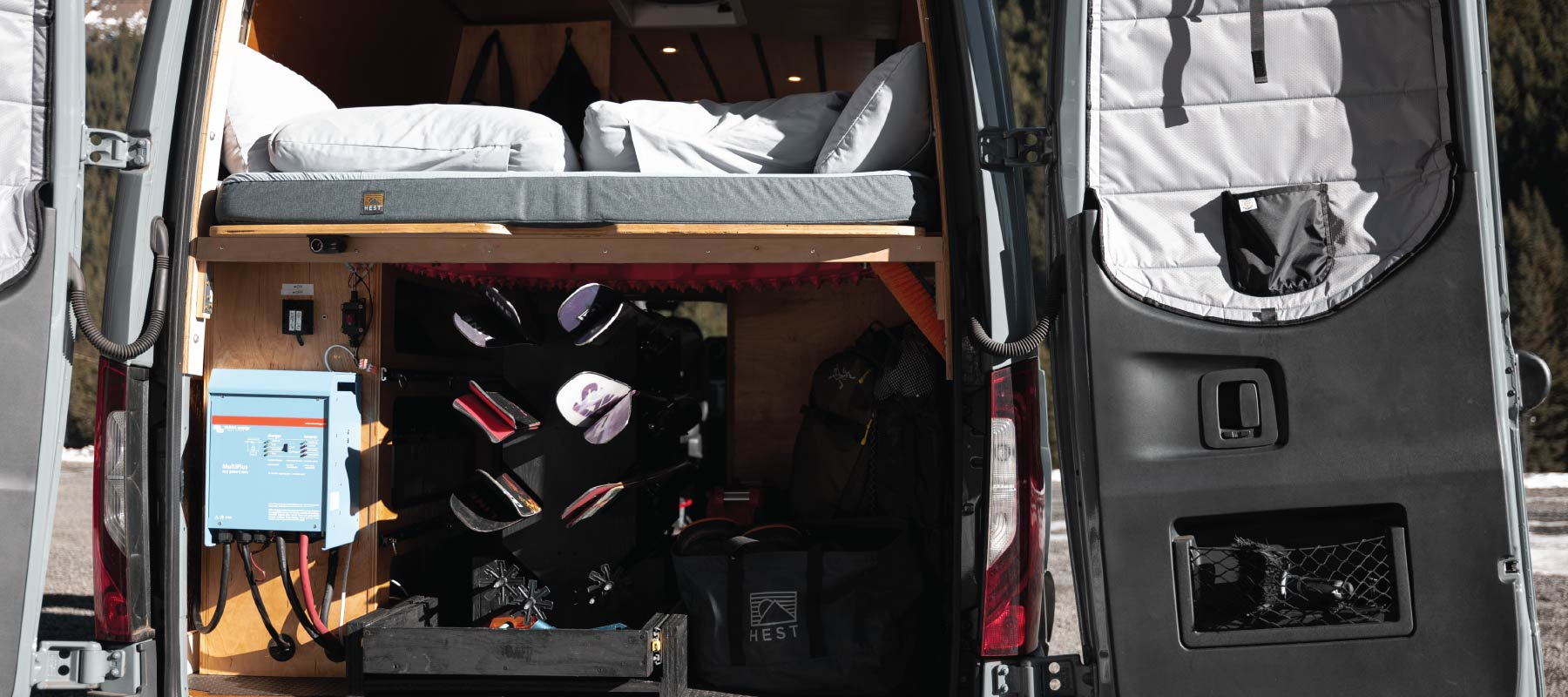Welcome back to Rigs We Dig—our monthly series celebrating the ingenuity, intention, and creativity behind DIY adventure rigs. This month, we’re heading to the Crystal Mountain to meet Krystin Norman and Peter Brigham and tour their 2022 Mercedes Sprinter 170 4x4, affectionately nicknamed Princess Program. Built with winter travel top of mind, this van was designed as a comfortable basecamp for ski days, cold nights, and long evenings parked in the mountains. From a custom sliding ski tray and gear-drying setup to a HEST Dually Custom S75 bed and an oven that sees daily use, this build prioritizes warmth, comfort, and practicality for chasing snow without overcomplicating the experience.