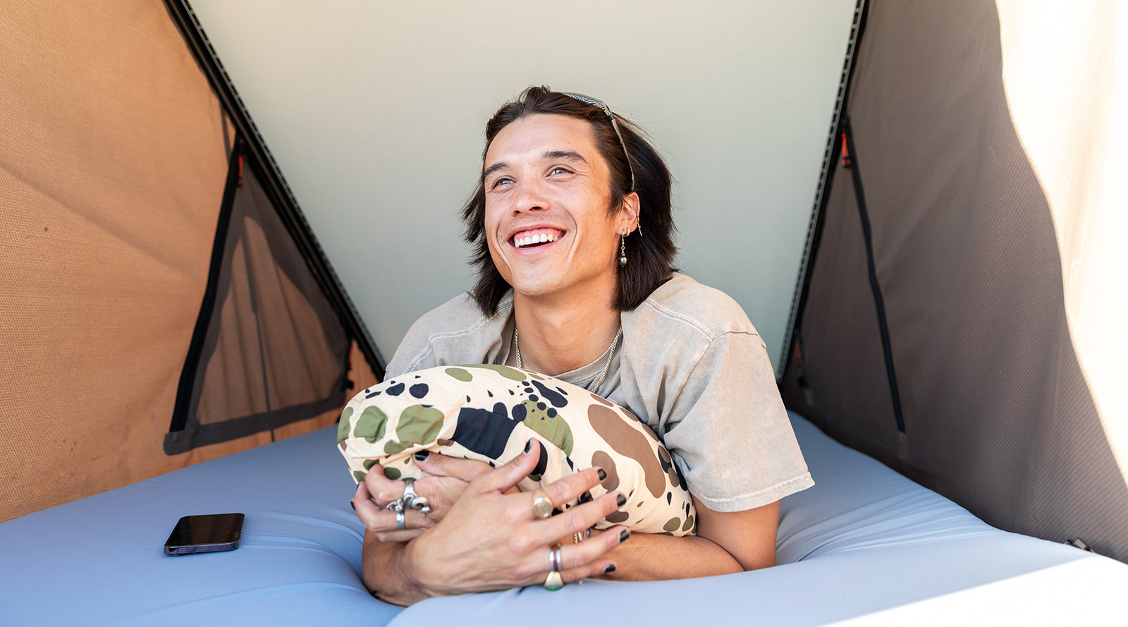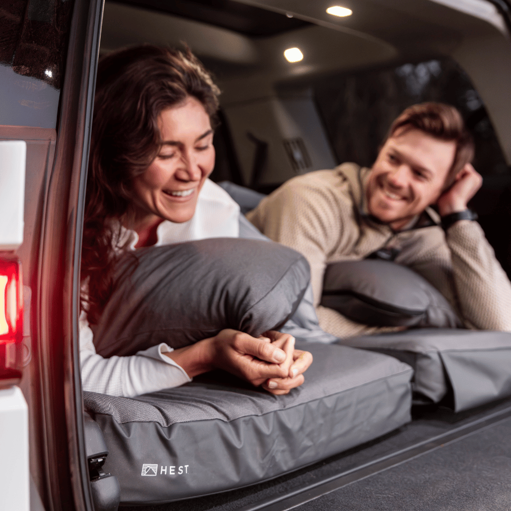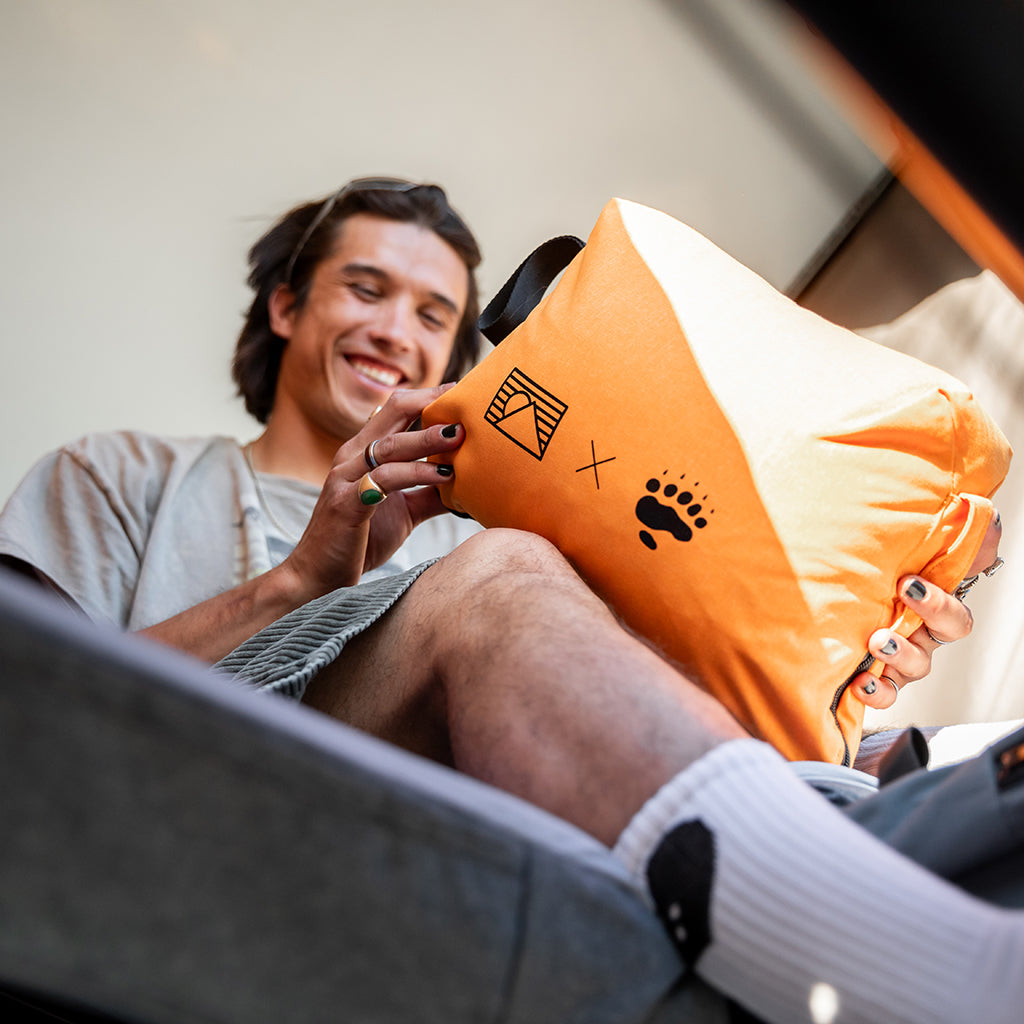 The Rivian x HEST Camp Pillow has a ton of technical features and tidy details wrapped into a tiny portable pillow package. It's durable, clean, and best of all, ready to go anywhere your head goes. It’s the perfect duo with the Foamy for R1S mattress for sleeping in the back of the Rivian R1S or also works like a dream whenever your travels take you on airplanes, road trips, AirBnB's, motels, tent camping, or for nightly use.