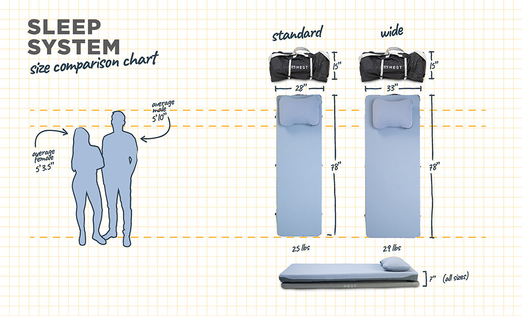 Every one of our portable camping mattresses is comprised of a two-layer memory foam construction, with an R-rating starting at 8.8 all the way up to 11.6. Our two layer memory foam construction is used in all of our mattresses, providing you with the best nights experience sleeping under the stars however you enjoy it.