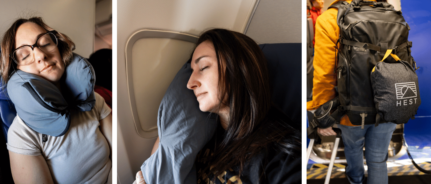 Let's be honest, traveling with your home pillow is not ideal. Traveling with the HEST Pillow is a whole new, worry-free, and comfortable experience. The HEST Pro Travel Pillow transforms into three different modes to meet all types of dreamers' sleeping situations.